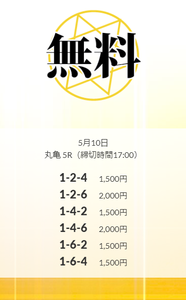 | 5月11日 | 丸亀 | 10R | 負 | ¥-10,000 |