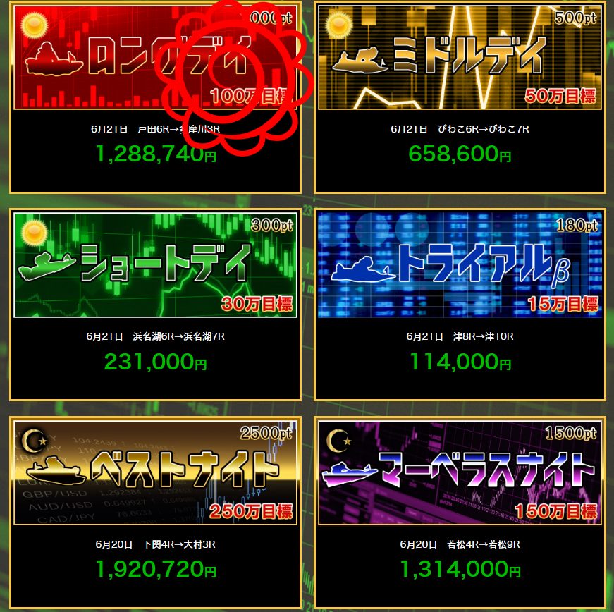 ただその日の結果によっても配当内容が多少前後するのは仕方ないかとは思いますが、そこは定期的に検証をし、コースにあたっての目標金額が適正か見極めたいと思います。今後も優良サイトを激選した上で有料情報をうまく利用した方が利益アップにつながりますね。