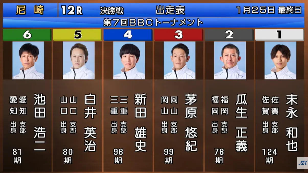 決勝戦(1月25日)の枠番にはこちらです
