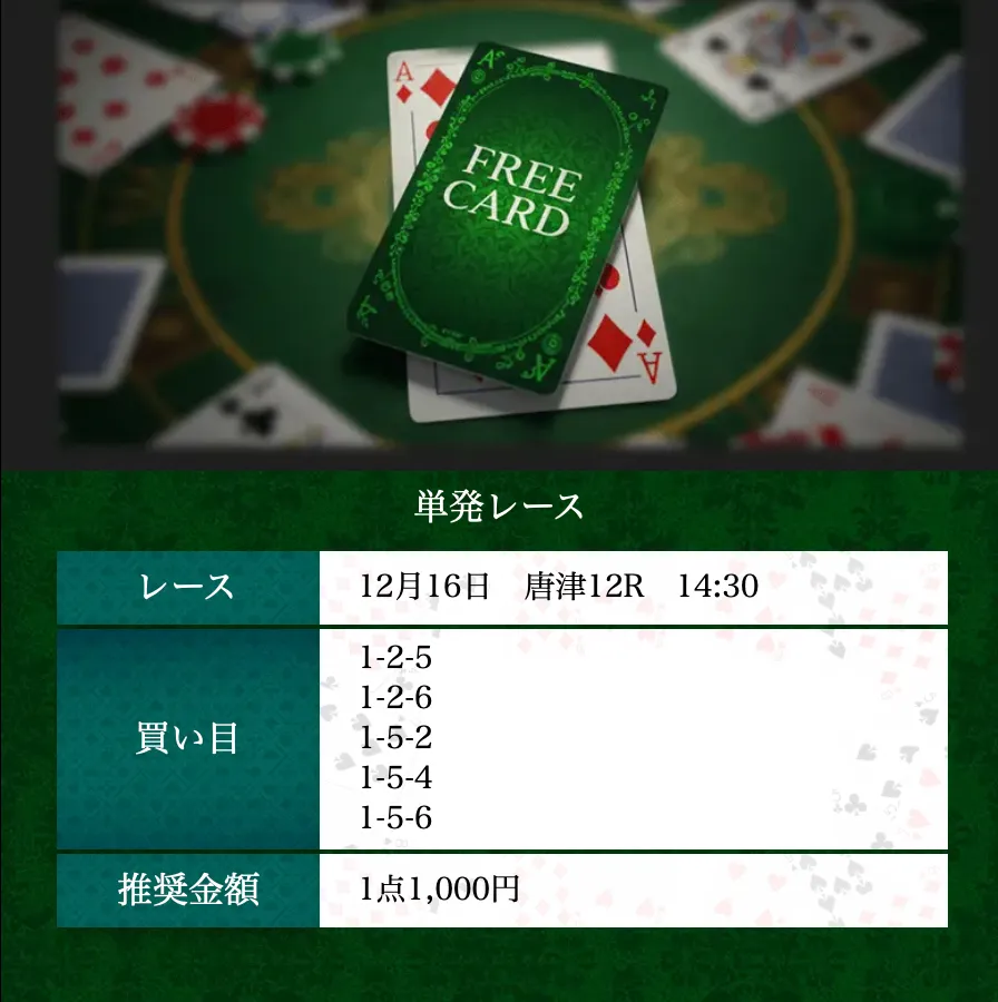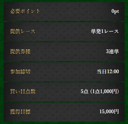 | 提供詳細 | 1レース(単発) |