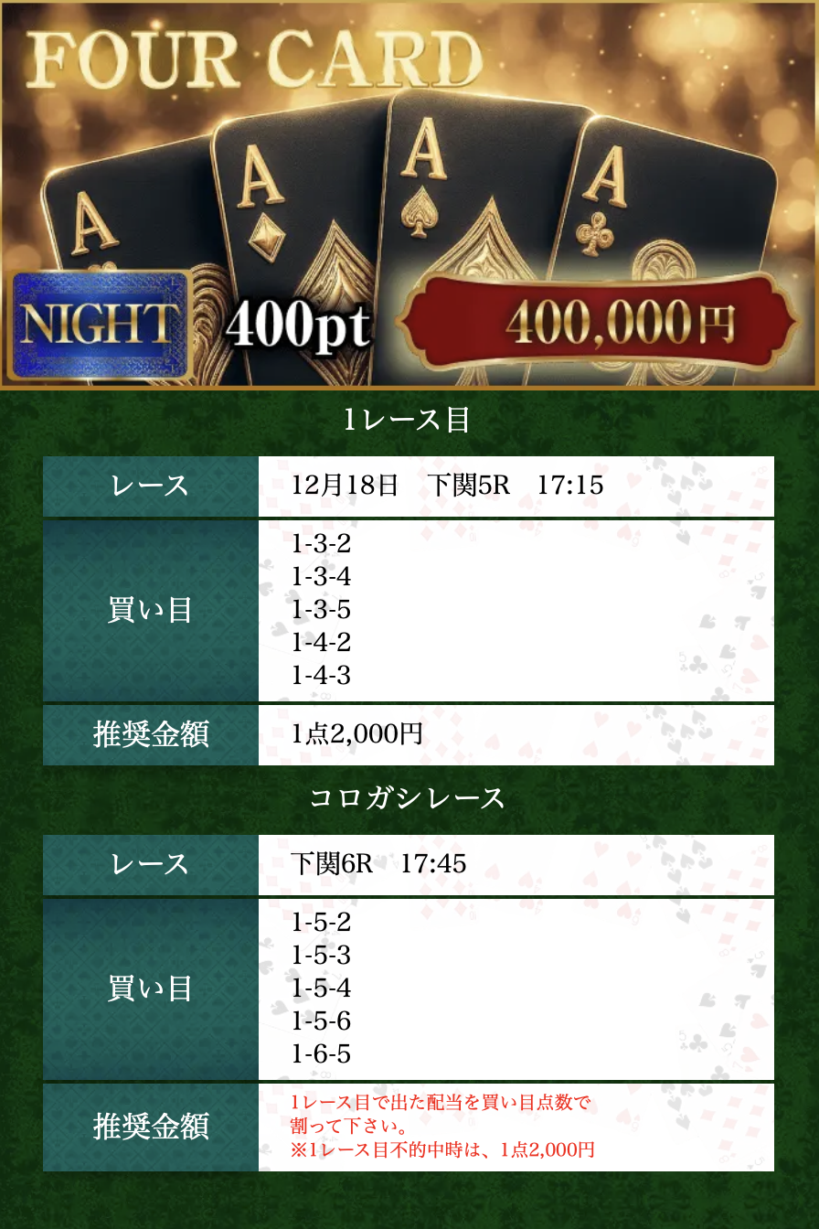 12月19日(金)≪FOUR CARD≫