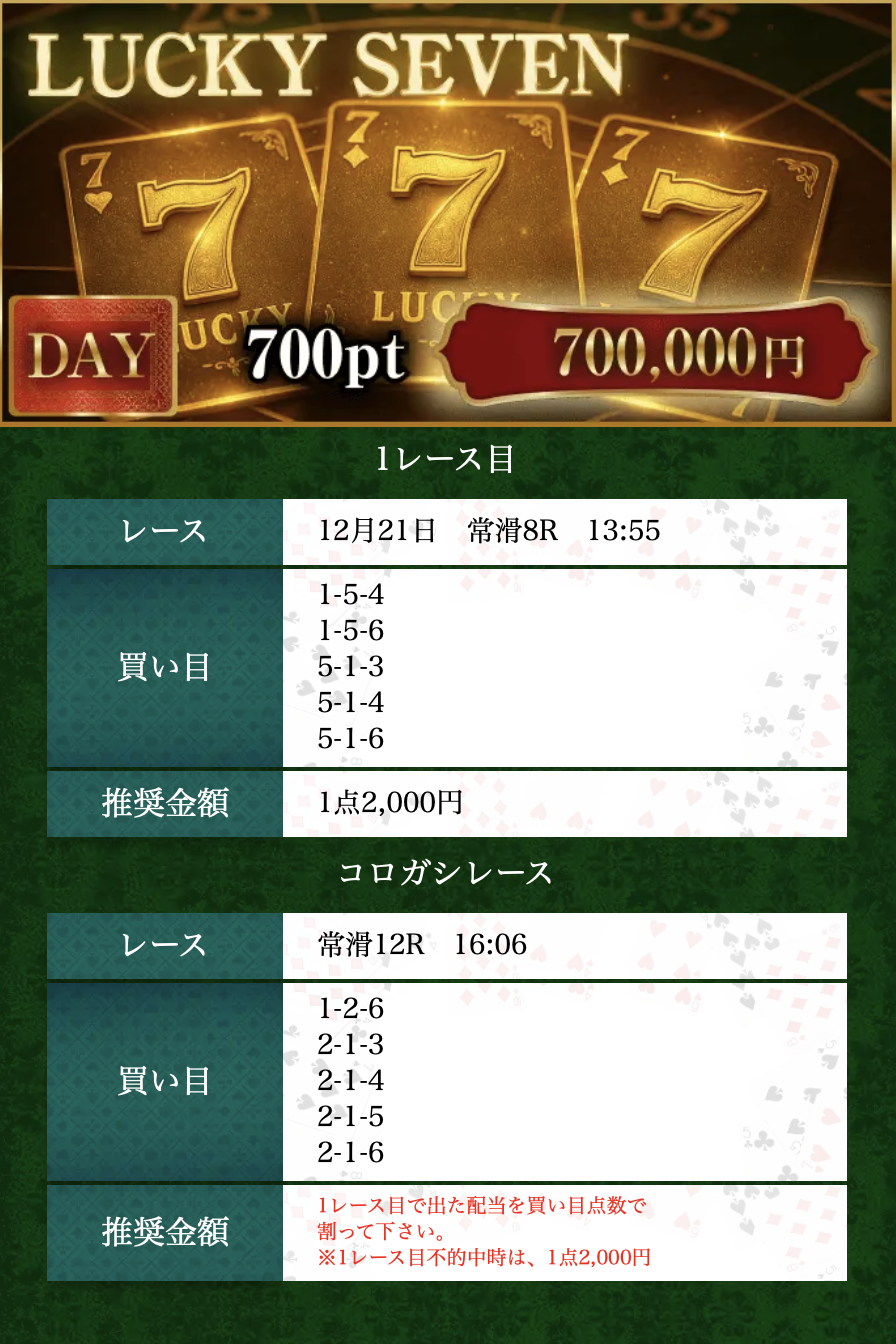 12月21日(日)≪LUCKY SEVEN≫
