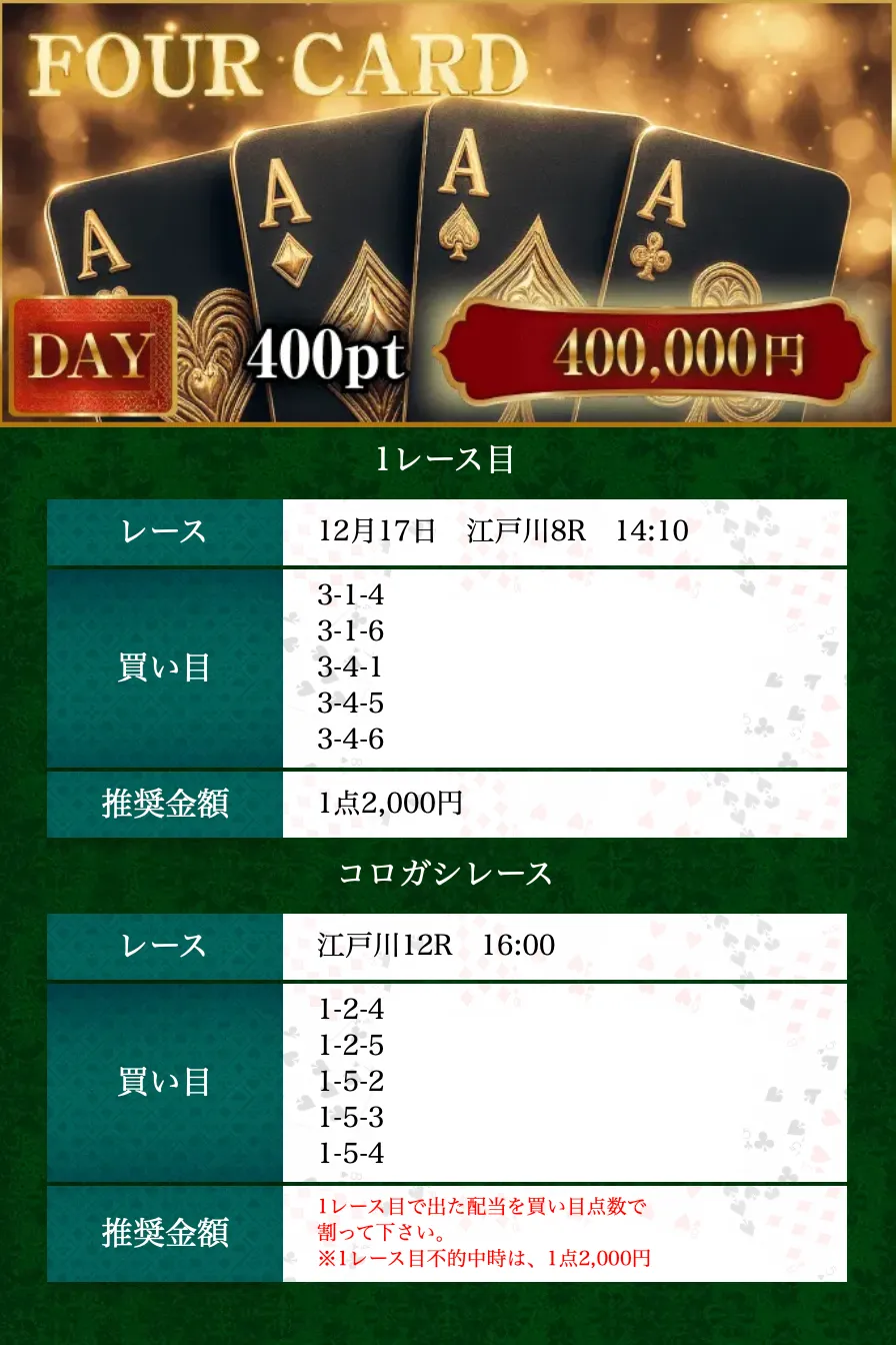12月17日(水)≪FOUR CARD≫