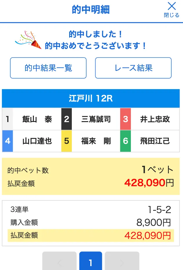 | 12月14日 | 戸田 | 7R | 的中 | ¥10,000 |