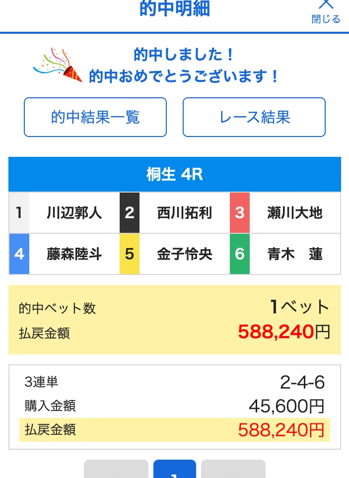 | 3月16日 | 江戸川 | 4R | 的中 | ¥23,000 |