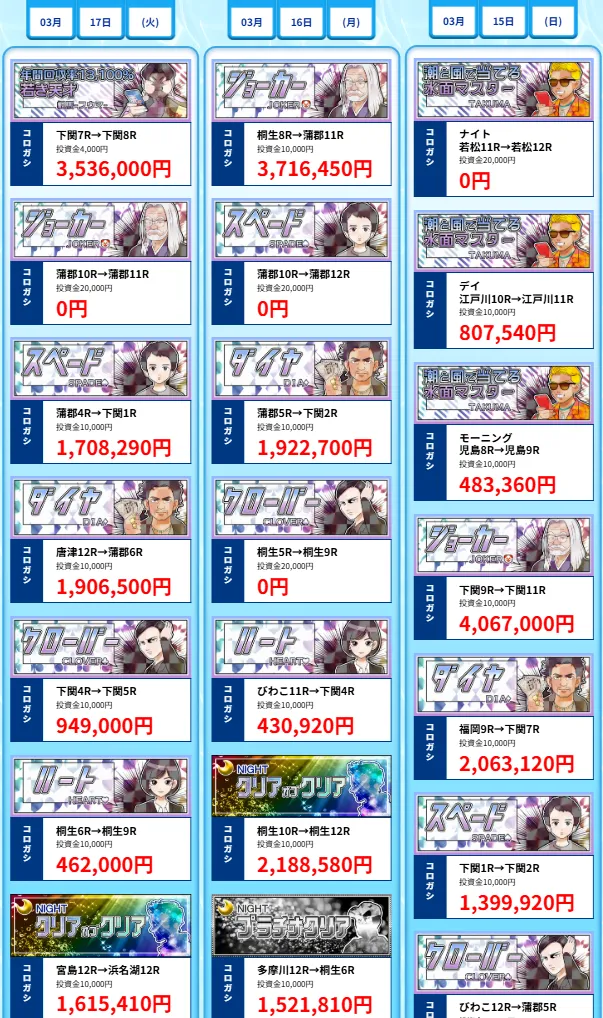 | 3月15日 | 江戸川 | 3R | 的中 | ¥23,900 |